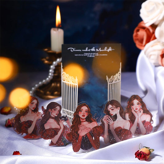 The Moonlit Banquet PET sticker set brings an elegant evening atmosphere to your crafts. Featuring delicately...