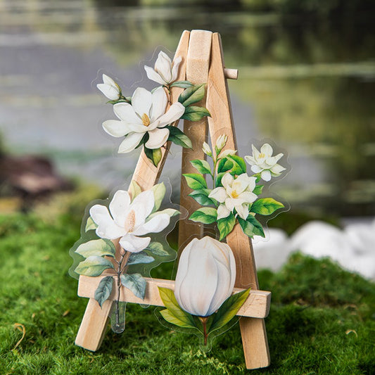 Bring a gentle floral glow to your journal with these elegant PET stickers. Product Features:...