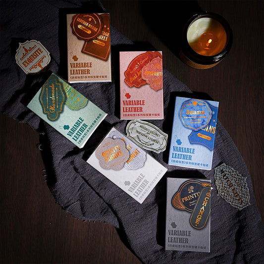 Description:Indulge in the rich texture and opulent charm of our Vintage Leather Series Label Stickers. Designed to mimic genuine...
