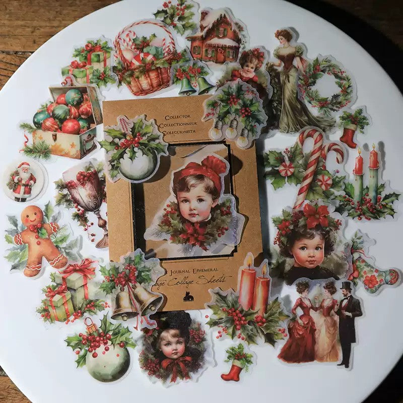 These Christmas stickers feature vintage style. They are suitable for mini scrapbooking, junk journal, card making, tag making and more paper crafts.