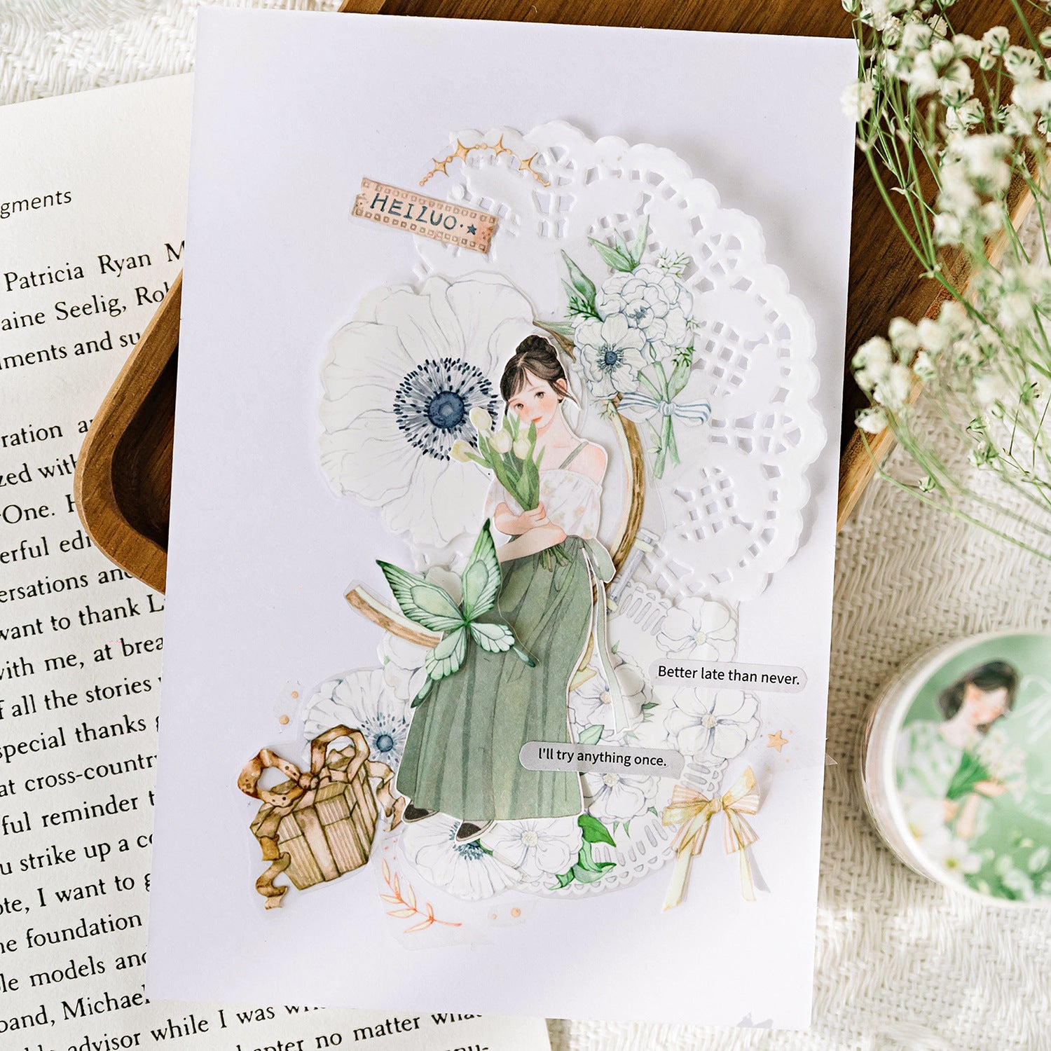 "Washi tape" is a type of decorative adhesive tape made from traditional Japanese paper, known as "washi." It features the same lightweight, durable qualities as traditional washi paper and is renowned for its unique texture, versatility, and wide range of colorful and decorative designs. Washi tape is typically used for crafts, DIY projects, journaling, scrapbooking, and other creative endeavors. It can be easily torn by hand, repositioned, and removed without leaving residue, making it ideal for adding embellishments to various surfaces such as paper, wood, plastic, and more. Washi tape has gained popularity worldwide for its aesthetic appeal, ease of use, and ability to add a touch of Japanese-inspired elegance to any project.