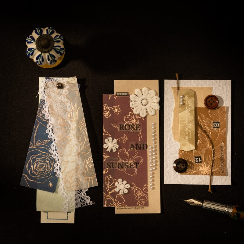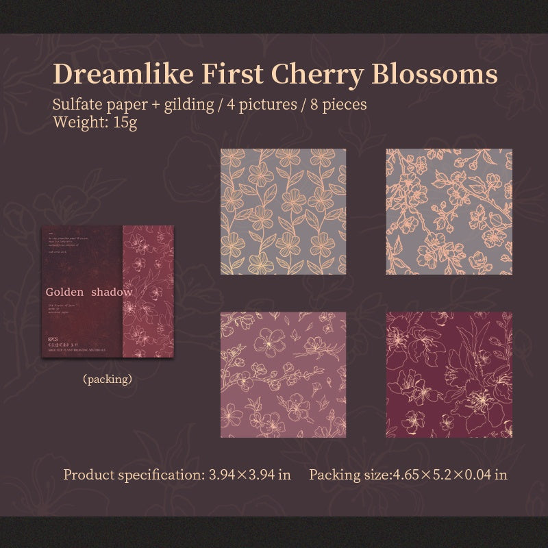 Golden-threaded Flower Shadow Scrapbook paper 8pcs